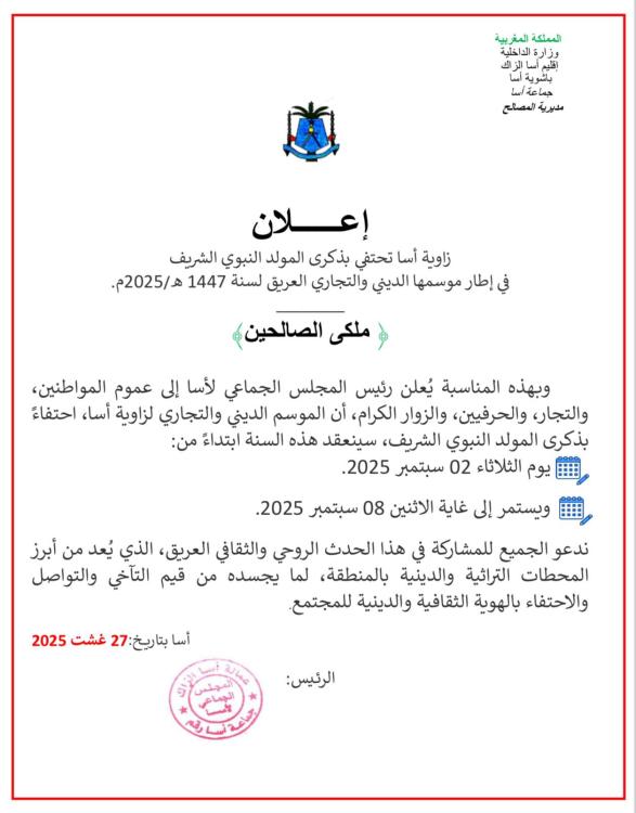 اجندة فعاليات الموسم الديني السنوي لزاوية آسا